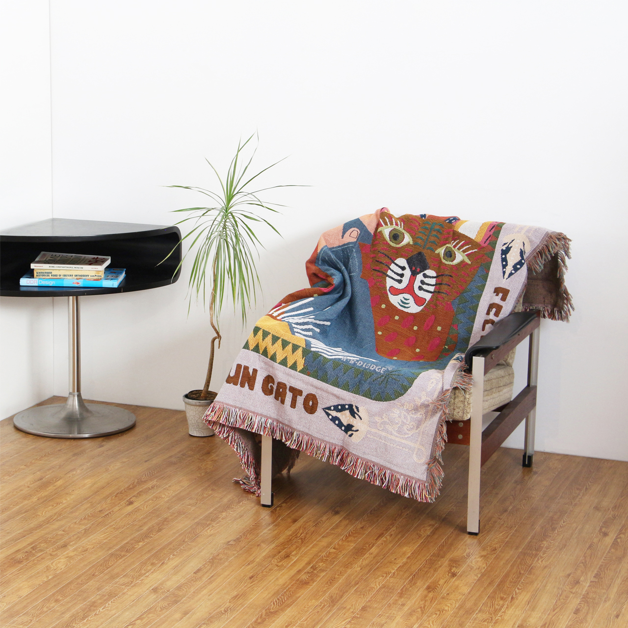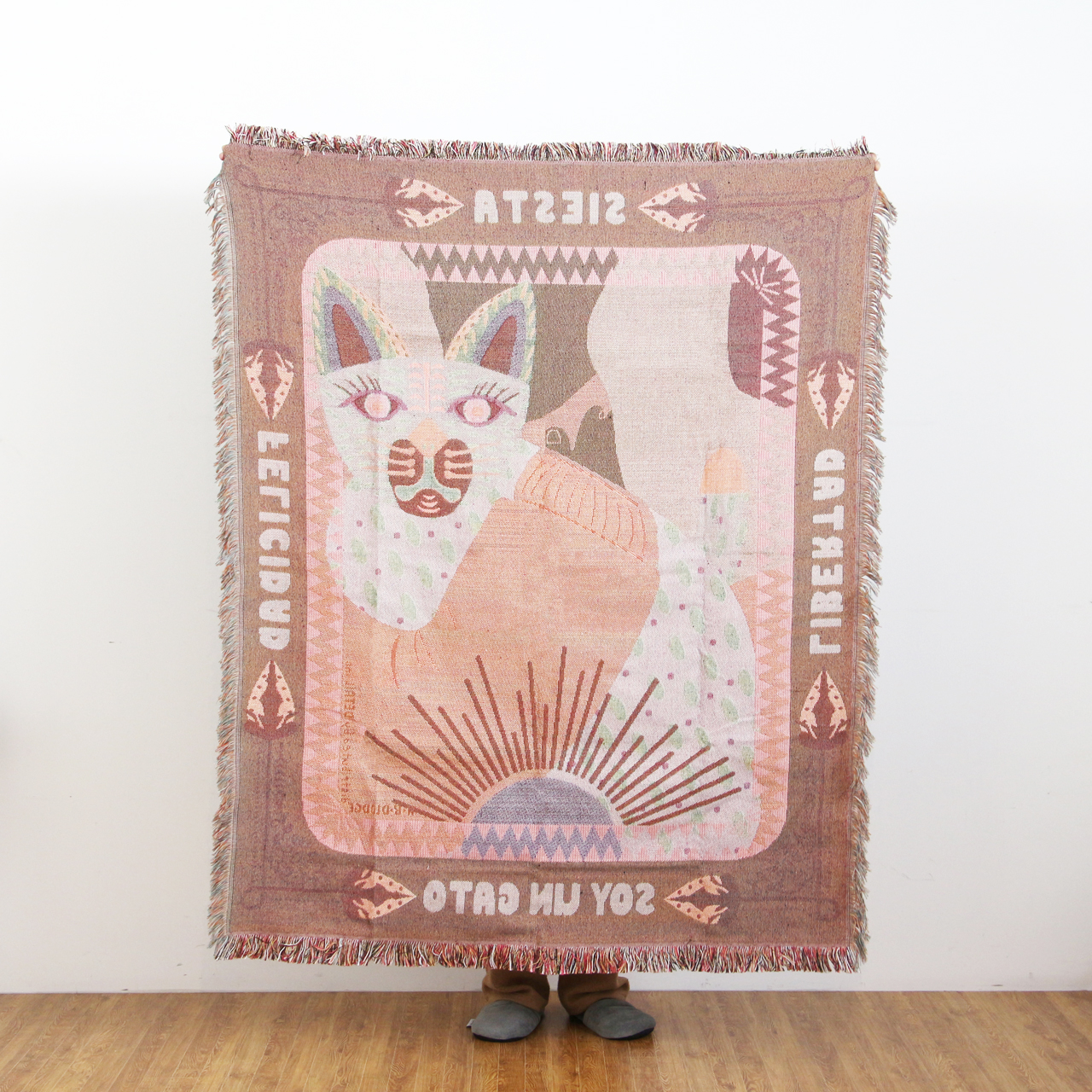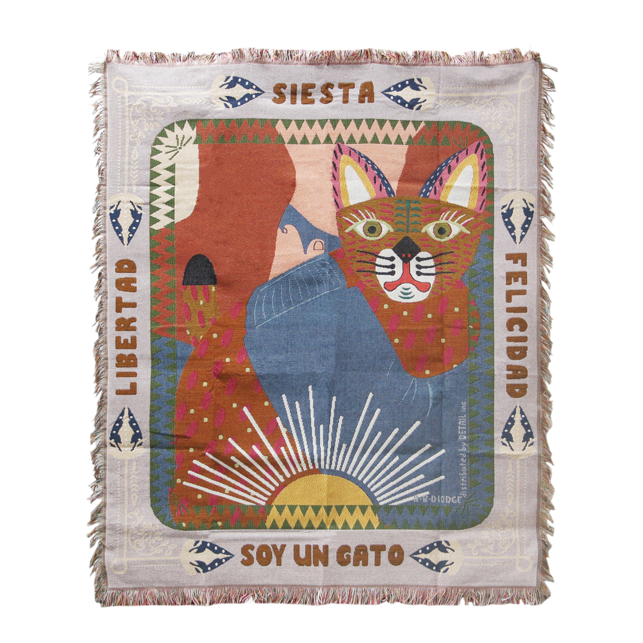 OAX Throwket "Cat" オアハカ スローケット "キャット" 猫モチーフの 大判ブランケット