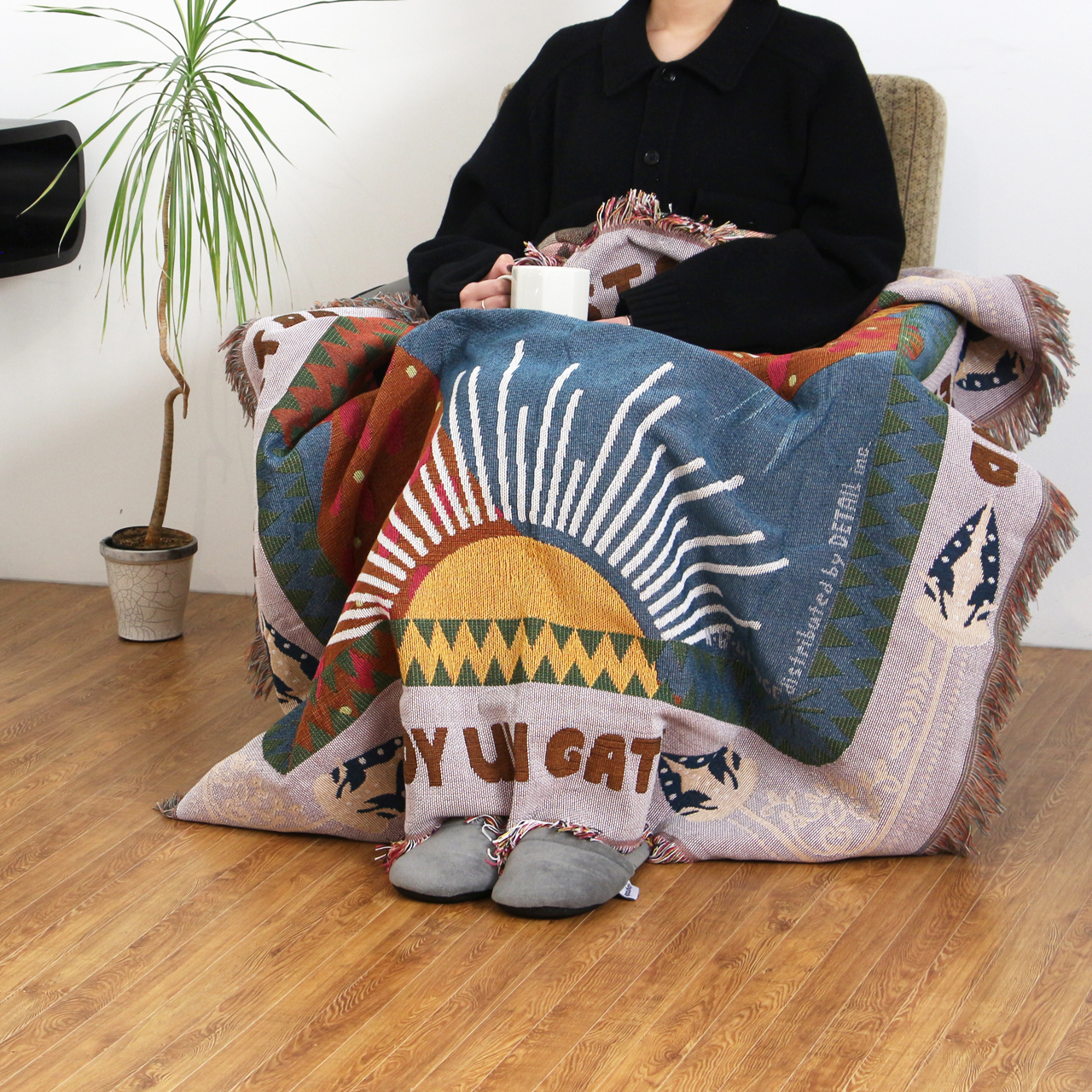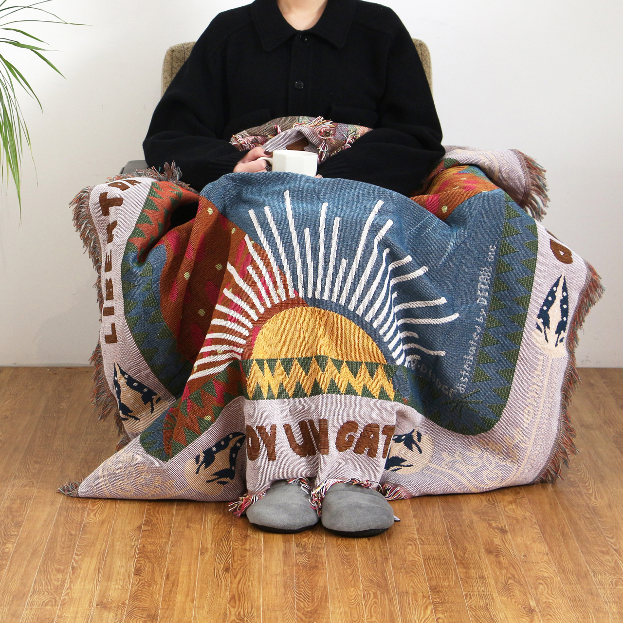 ソファやベッドにサラッと掛けて、膝掛けとして、タペストリーとして壁面の装飾としてなど様々な使い方ができます。