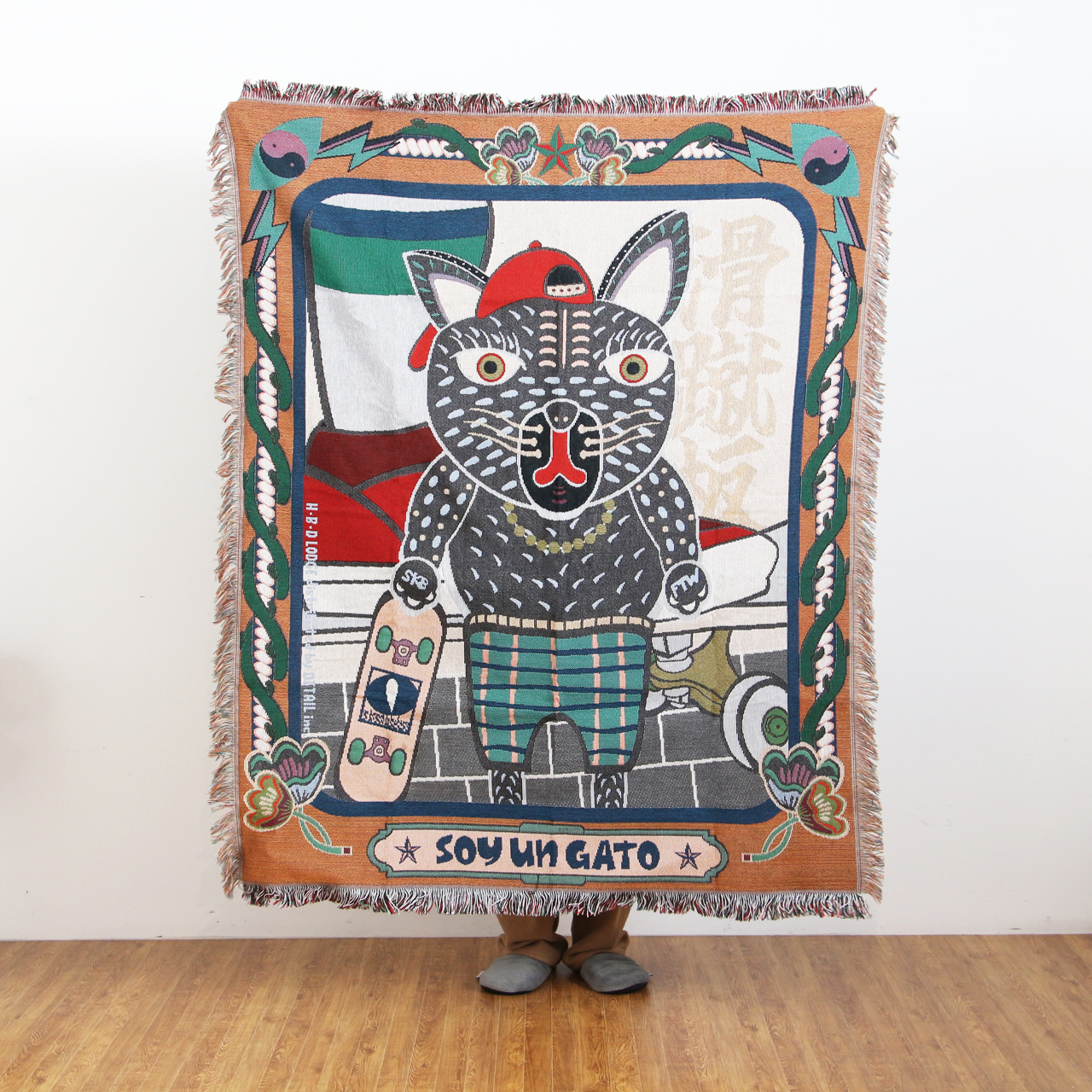 OAX Throwket "Cat" オアハカ スローケット "キャット" 猫モチーフの 大判ブランケット
